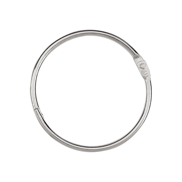 Bundle swatches of fabric and card with these loose leaf rings. The 2-inch diameter means they can hold around 375 sheets of paper, so this pack of 50 rings provides ample supplies for multiple workstations. The hinged closure lets the rings open and close easily when you want to remove or add items, and the pull-push split opposite the hinge makes them secure. These silver-colored ACCO loose leaf rings are made of nickel-plated steel for strength and rust resistance.