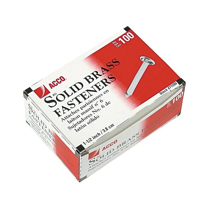 Give presentations a polished look with these brass fasteners. The flexible prongs can be bent to accommodate many positions, while the larger head size helps keep the fasteners in place. These ACCO brass fasteners have self-piercing points that punch through paper easily, increasing efficiency.