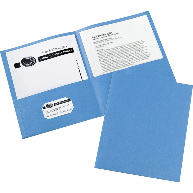 For organizing your loose papers, these two-pocket folders provide a classic solution. Made of standard embossed paper, the folders are lightweight and flexible. Two interior pockets provide room for papers, brochures and booklets. A die-cut business card holder on the inside left pocket lets you personalize the look of the folder. Rich color helps you locate it easily and makes for an eye-catching presentation to clients, colleagues and more.