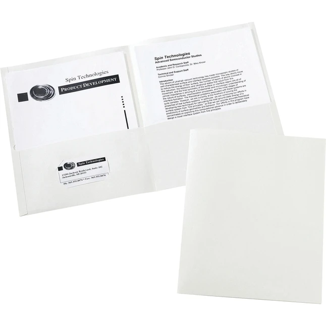 For organizing your loose papers, these two-pocket folders provide a classic solution. Made of standard embossed paper, the folders are lightweight and flexible. Two interior pockets provide room for papers, brochures and booklets. A die-cut business card holder on the inside left pocket lets you personalize the look of the folder. Rich color helps you locate it easily and makes for an eye-catching presentation to clients, colleagues and more.