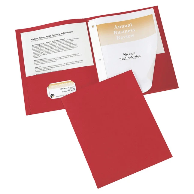 Two-pocket folders feature three durable fasteners that hold up to 20 three-hole punched, letter-size pages for professional reports. Two interior pockets accommodate loose papers, allowing you to stow notes, brochures or other unpunched pages along with the report. Left pocket has a die-cut, business card holder. Each report cover is constructed of sturdy embossed paper for a classic look.