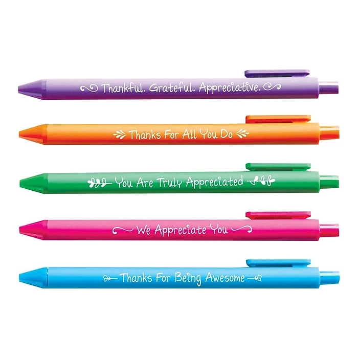 With soft-touch grips, gel tips, and witty recognition sayings, the Baudville Smart Sayings pens will be everyone’s new favorite, whether they’re signing official documents or doodling away in their notebook. Each pen features a fine point gel tip with ink that matches the pen color.