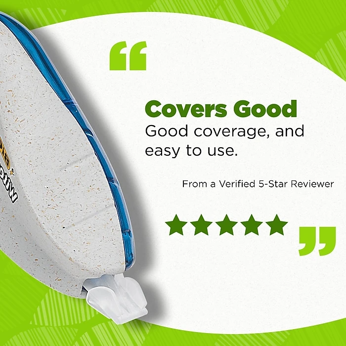 This Wite-Out Brand correction tape is not only made from recycled plastic excluding tape, but the paperboard used in the packaging is made up of 100% recycled content and is recyclable. Each convenient dispenser contains 19.8 feet of white correction tape so you can draw or write safely knowing even if you mess up, there’s a fix. The BIC correction tape goes on dry, allowing you to make instant corrections with no mess and no waiting time, while the convenient size allows hands of all sizes to make quick and accurate corrections. Suitable for lefties and righties, these brightly colored correction tape dispensers are compact enough to fit in any bag so students can easily correct their work. Looking for larger quantities of eco-friendly school supplies? Choose this bulk pack of correction tape, which contains 10 BIC Wite-Out Brand tapes. Pick up BIC Ecolutions Wite-Out Brand correction tape (formerly ReVolution) for a high-quality, affordable tape you can trust.