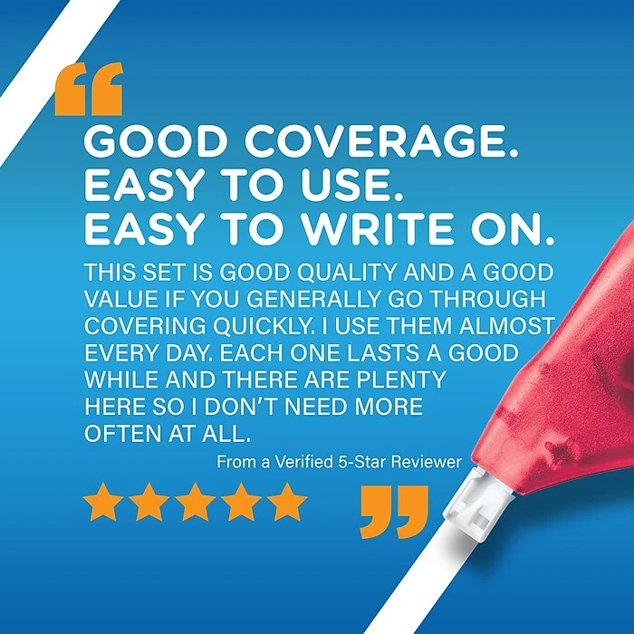 - One 18-count pack of BIC Wite-Out EZ Correct Correction Tape