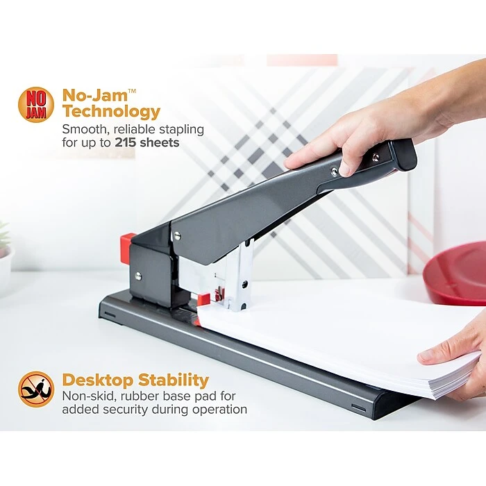 - STAPLES 2 – 215 SHEETS – This high capacity stapler is so versatile that it can handle the small job of stapling just 2 sheets of paper and still tackle the job of stapling 215 sheets as well