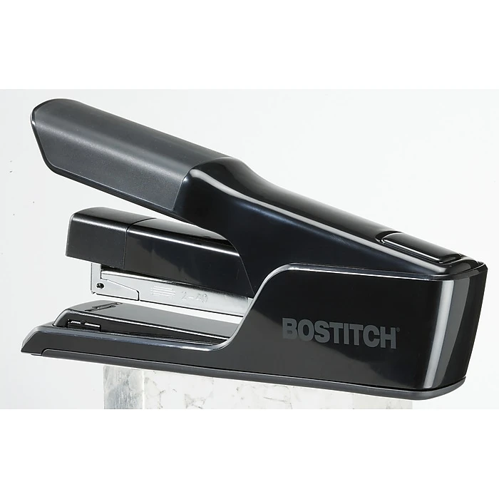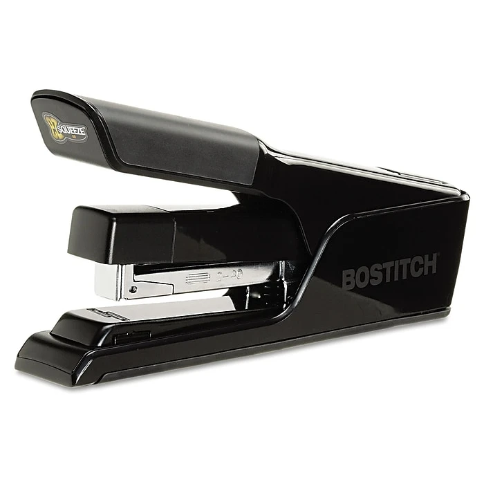 The Bostitch EZ Squeeze staplers are here! The EZ Squeeze 40 staples 2 to 40 sheets of paper with 50% less force. It has the B8 technology and uses EZ Squeeze Premium Staples. The B850 was designed to be quiet, therefore it’s a great stapler to use in open office environments. The Flat clinch allows you to have more space, because the paper stacks are flatter. The non-skid base also helps with stapling as it allows for better stability and desktop protection. This model with stand vertically or horizontally for ultimate convenience.