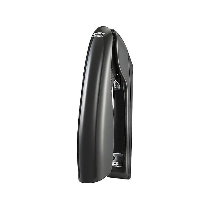 Bind up to 20 sheets of paper together at one time with this stand-up black stapler. The ergonomic design provides a more comfortable experience, while the reload alert window makes you aware when this tool is almost out of staples. This Bostitch premium black stapler is antimicrobial protected to help prevent the growth of germs on the product and can lie flat or stand upright for added versatility.