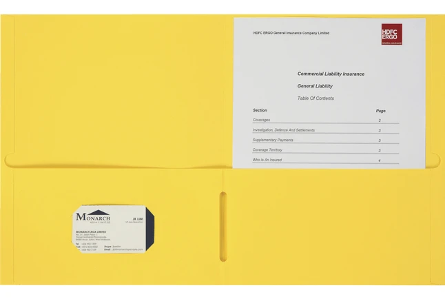 Folders offer convenient pockets inside front and back covers. Pockets hold up to 100 sheets of letter-size, loose paper. Inside front pocket features business card holder. Folders are made of sturdy paper stock.