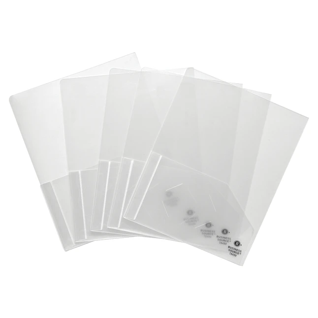 Business Source 2-Pocket Poly Portfolio, 30 Sheet Capacity, Clear, Pack Of 5