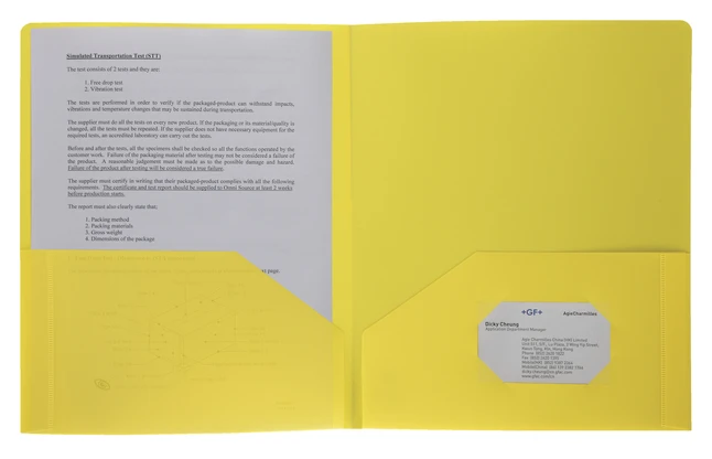 Poly portfolio with two pockets offers durable construction for presentations or storage. Archival-quality, 0.3 mil thick poly protects your letter-size documents from spills and wear. The inside left pocket features a die-cut business card holder to make your presentation complete. Each pocket holds 15 sheets and is sealed on two sides.
