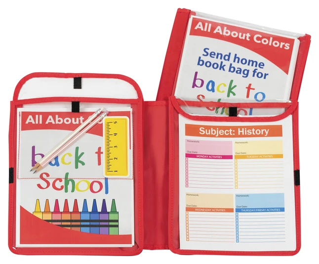 The Homework Connector Folder transports workbooks and homework between school and home in a superweight vinyl folder. Each folder has two pockets with a colorful 1 inch fabric gusset that can store workbooks up to 9 x 12 x 1 inches. Reinforced stiched edging provides added durability and extends the lifespan of the folder.