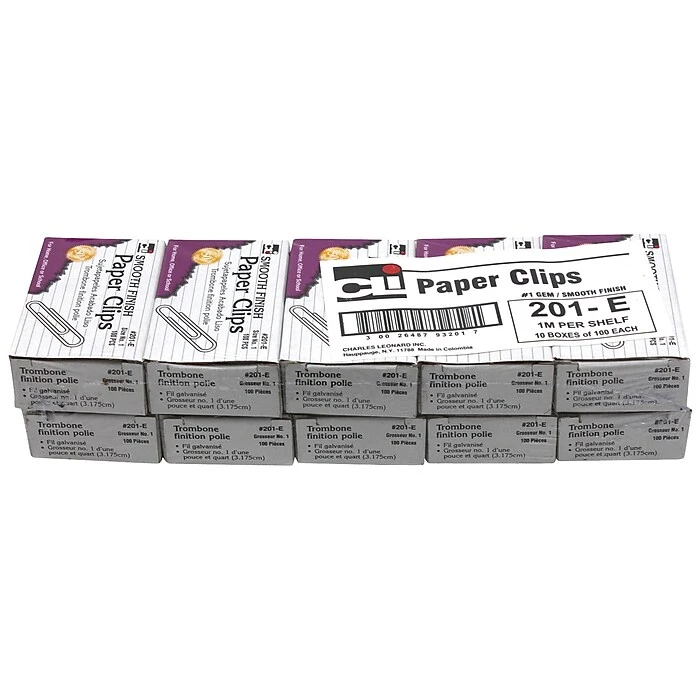 Charles Leonard Paper clips gem feature an elliptical shape that holds papers together as effectively. Clips are made up of 100% recycled materials with 50% post-consumer material, sold as 100 per box.