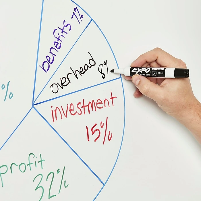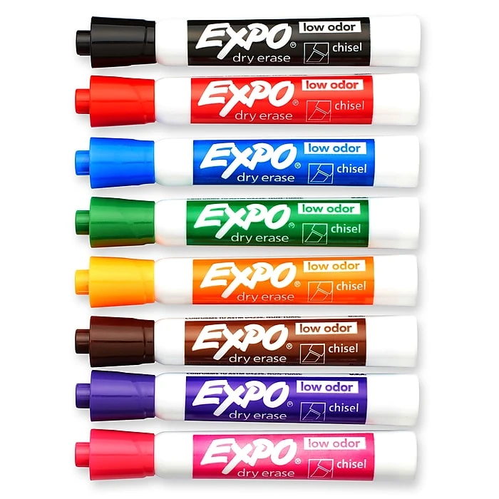 Use these dry-erase markers during presentations, classes and other events. The eight assorted colors make it simple to categorize notes and draw attention to specific bullet points, and the ink is made from an alcohol-based formula, preventing odors. These EXPO dry-erase markers can be used on whiteboards, glass and most other nonporous surfaces for added versatility and feature chisel tips, so you can draw bold and thin lines easily.