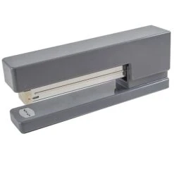 - The bottom of the stapler is coated in rubber to prevent it from slipping when in use. Metal cartridge accepts standard size staples.
