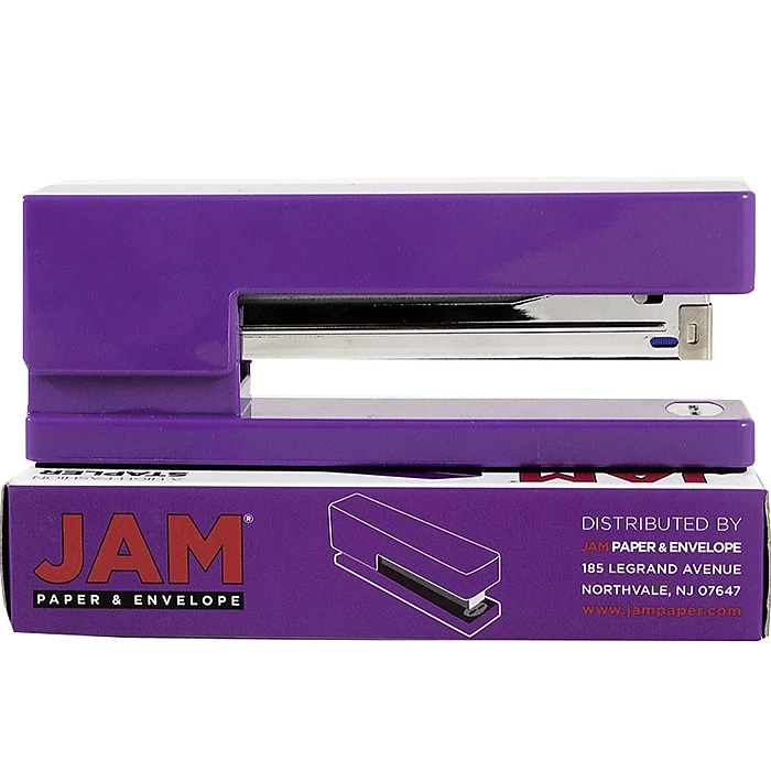 Spruce up your desk with JAM Paper® Colorful Staplers! From home to office workspaces, adding a burst of color makes for brighter days and increased productivity. Organize and keep all your important documents in one place with this purple stapler that is sure to have coworkers, friends, and family asking where you got it from! Our purple stapler made from durable high quality plastic is the accessory your desk is begging for. This purple stapler measures 6″ x 2 1/2″ x 1 1/8″ and does not come with staples. Matching staples must be purchased separately.