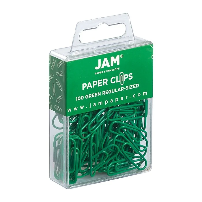 Green with envy is not just a saying, it’s the truth! Especially when you use these green JAM Paper® Colored Standard Paper Clips! Not only is the color eye catching and memorable, so is the quality. These clips are made of durable, smooth metal so they won’t break or bend easily. They are a standard size, measuring 1 inch long. Use these paperclips to get organized! Whether it’s at home, in school, or around the office, paperclips always come in handy. But instead of using the normal silver color, step up your clipping game with this burst of green color! These clips are sold in packs of 100.
