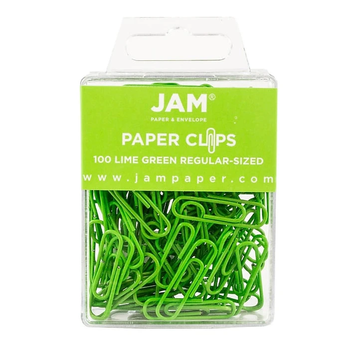If you’re looking for the brightest way to spruce up that pile of papers on your desk or in your locker, you have stumbled upon the right page! These JAM Paper® Colored Standard Paper Clips are a bright, lime green color so they stand out and get noticed no matter what. They measure 1 inch long, so they are a standard size and are perfect to use to hold together smaller documents such as receipts, coupons and more! They are made of sturdy, durable metal that is smooth so it won’t catch on anything or be breaking or bending anytime soon. Use them to keep organized around the office, at home, at school or anywhere that needs some tidying up. They are sold in packs of 100.