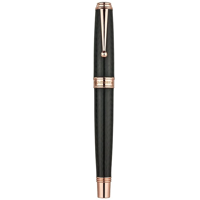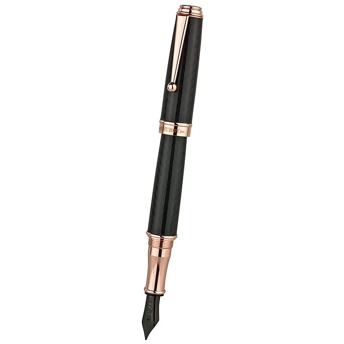 Monteverde® Invinciaâ„¢ Deluxe fountain pen is durable and resistant to corrosion with special black titanium coating to stub nib. Pen with rose gold trim has lacquer finish and a dimension 5.4″ x 0.5″.