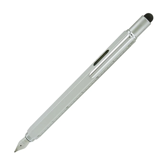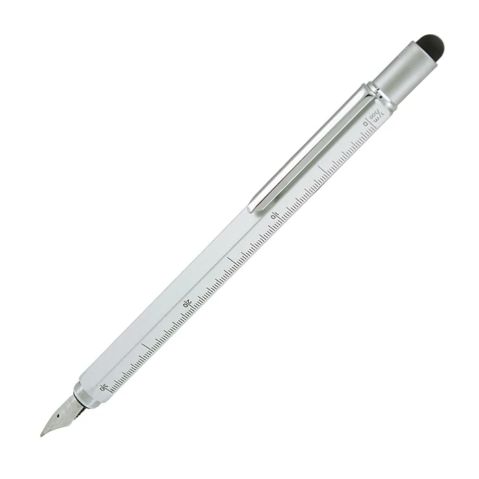 This refillable fountain pen features a smooth and reliable nib. This sturdy metal pen has a conductive rubber stylus that is compatible with any touch screen device.