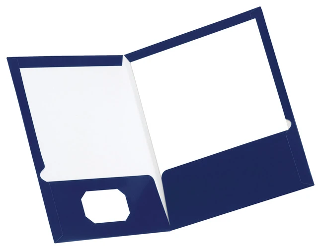 Oxford Laminated 2 Pocket Folders have laminated high-gloss paper stock and die-cut pockets to hold a business card or CD. Features letter size, shiny appearance and long life sturdy folder. Pack of 25.