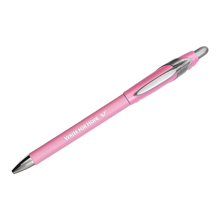 Take on a range of writing tasks with these black retractable ballpoint pens. They are retractable to help prevent unwanted marks when stored away, while their 1.0mm tip ensures marks are smooth and vivid. These Paper Mate FlexGrip Elite Write for Hope retractable ballpoint pens have a rubber grip with anti-microbial technology for safe, comfortable handling.