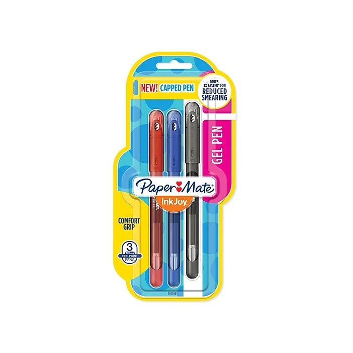 - Smooth gel ink in Jet Black, Red Rush, and Pure Blue Joy