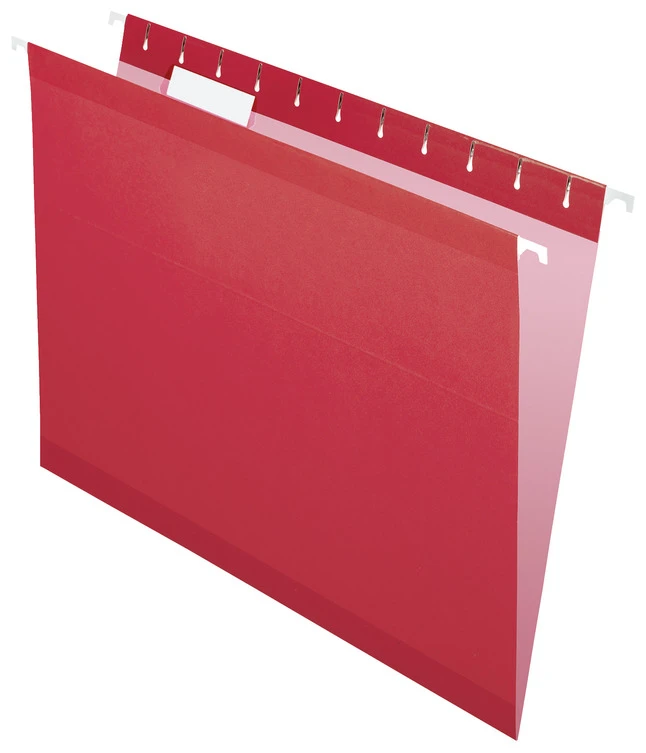 Pendaflex Reinforced Hanging File Folders, 1/5 Cut Tabs, Letter Size, Red, Pack Of 25