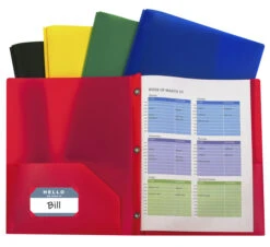C-Line 2-Pocket Poly Folder, 3 Hole Punched, Assorted Colors