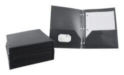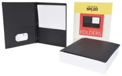 School Smart 2-Pocket Folder With Fasteners, Black, Pack Of 25