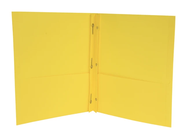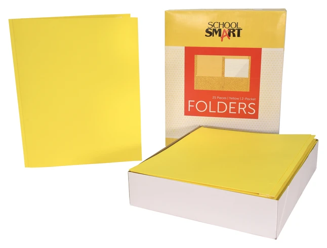 School Smart 2-Pocket Folder With Fasteners, Yellow, Pack Of 25
