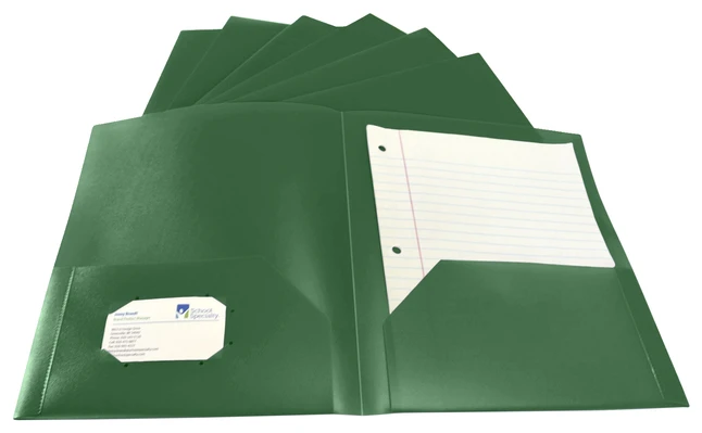 School Smart 2-Pocket Poly Folders, Green, Pack Of 25