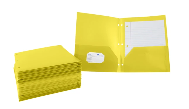 - Heavyweight polypropylene pocket folders are easy to clean/wipe down and resist tearing