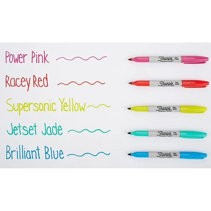 - Colorful Options: Includes Power Pink, Racy Red, Supersonic Yellow, Jetset Jade, Brilliant Blue and 19 classic color Sharpie permanent markers
