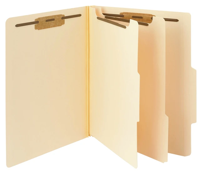 - Plain tabs, 2/5 cut right of center on folders, 1/3 cut on dividers