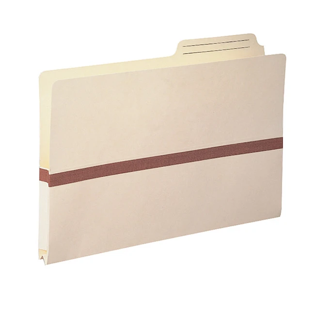 File pocket with 2/5-cut tabs features drop-front styling for easy access and closed sides to keep contents secure. Tear-resistant material reinforcement ensures durability. File pocket has a single-ply top and is made of heavyweight, 11 point manila stock. It expands up to 1 inch to hold thick projects.