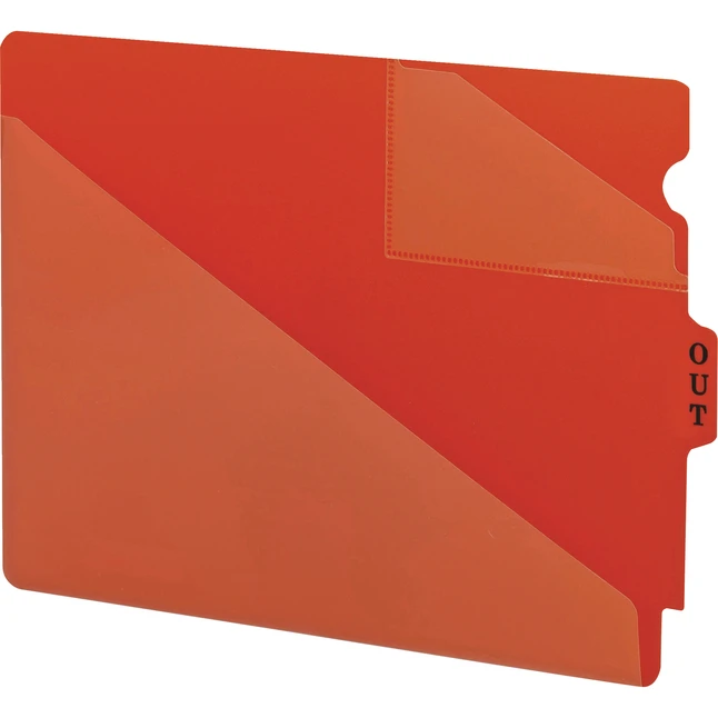 Clearly mark where folders have been removed from your shelf filing system with these end-tab out guides. Small translucent pocket holds charge-out form indicating file taken, date taken and by whom, while the larger pocket temporarily holds full-size documents to be filed in the folder when it is returned. Tabs in 1/5 cut center position are embossed with the word, “OUT.” Letter-size out guides are made of 20 point poly material that is acid-free and archival quality.