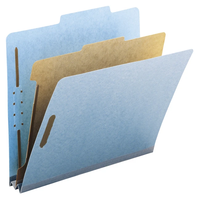 Smead Pressboard Classification Folder, Letter Size, 1 Divider, Light Blue, Pack Of 10
