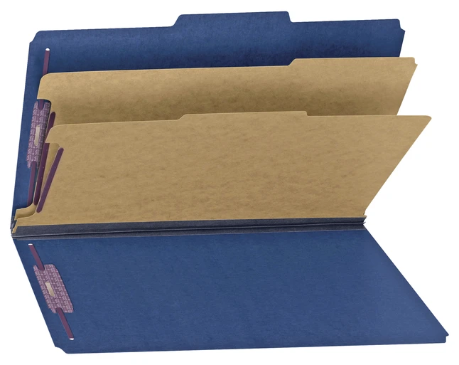 Smead SafeSHIELD Pressboard Classification Folder, Legal Size, 2 Inch Expansion, 2 Dividers, Dark Blue, Pack Of 10