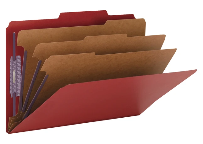 Smead SafeSHIELD Pressboard Classification Folder, Legal Size, 3 Inch Expansion, 3 Dividers, Bright Red, Pack Of 10