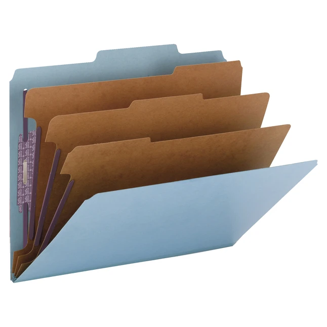 Smead SafeSHIELD Pressboard Classification Folder, Letter Size, 3 Inch Expansion, 3 Dividers, Blue, Pack Of 10