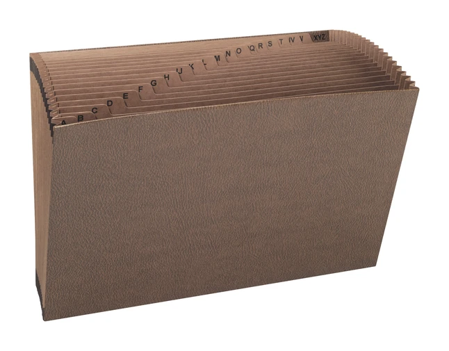 Organize your paperwork using this TUFF Expanding File as a desk or credenza organizer. 21 pockets are labeled from A to Z for filing your legal-size materials in alphabetical order. Each pocket expands to 7/8 inch. Double-thick, front and back panels have a heavy reinforcement on the liner board. Design also features full-height redrope dividers, full-height redrope gussets and tear-resistant reinforcement at the top. For easy access to your materials, leatherlike expanding file does not have a flap.