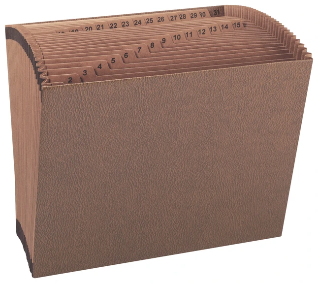 Sparco Business Source Expanding File, No Flap, Letter Size, 1-31, 31 Pocket, Brown