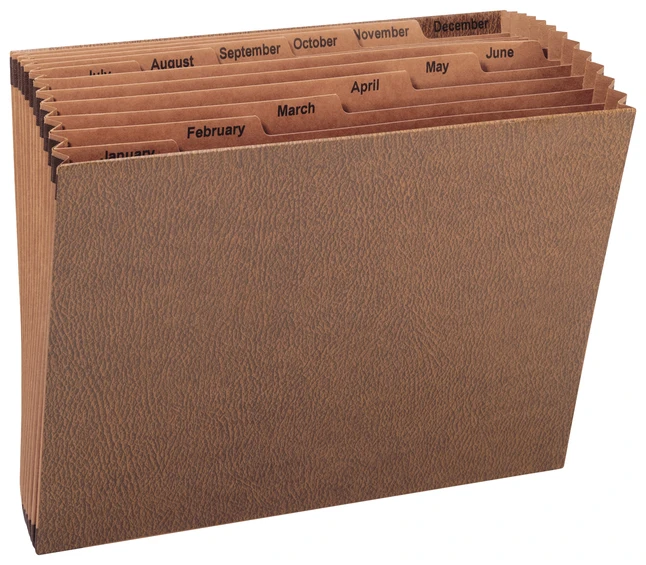 Sparco Business Source Expanding File, No Flap, Letter Size, Jan-Dec, 12 Pocket, Brown