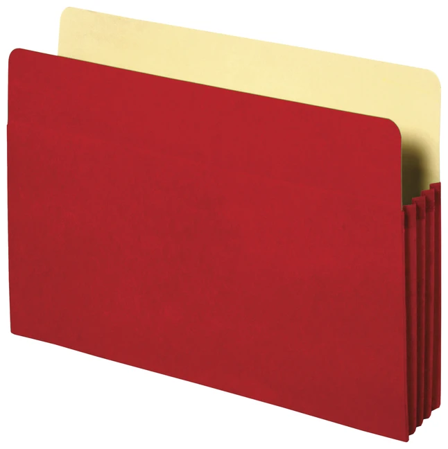 Vibrant-colored file pocket features a matching colored gusset to help color-coordinate filing projects. Durable construction has Tyvek-reinforced gusset tops for added strength. Paperwork is easy to access with the scored, drop-down, front panel. The file pocket expands up to 3-1/2 inch to hold a thick stack of your letter-size documents.