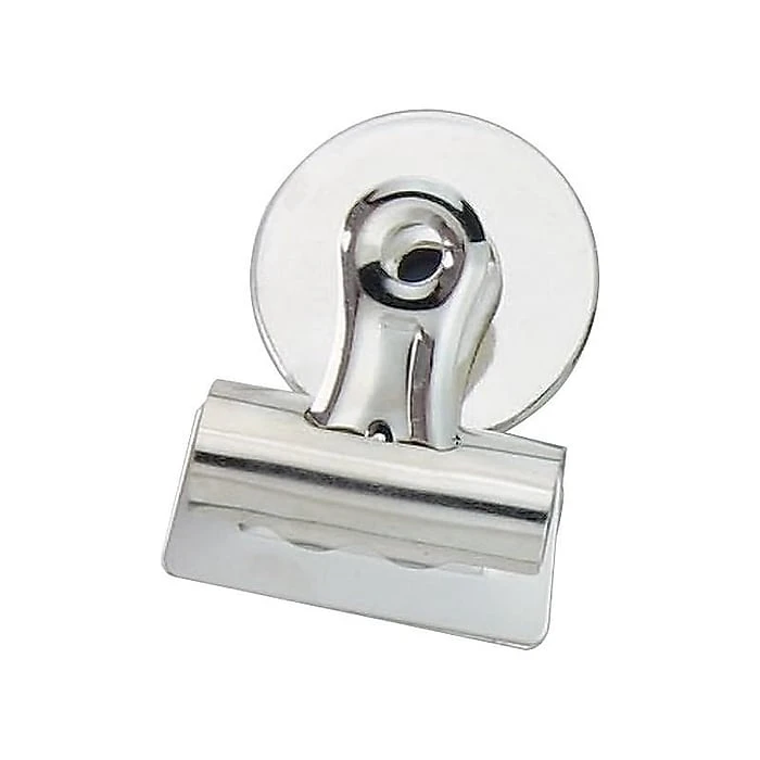 Ensure notes and documents are easily accessible with these #2 bulldog clips. Each clip has a tight spring mechanism to provide a strong grip on stacks of paperwork, ensuring nothing falls out prematurely, while the built-in magnet lets you attach it to any metallic surface. These Staples magnetic bulldog clips have a 0.5-inch capacity and come in a 3-pack so you have plenty for your space.