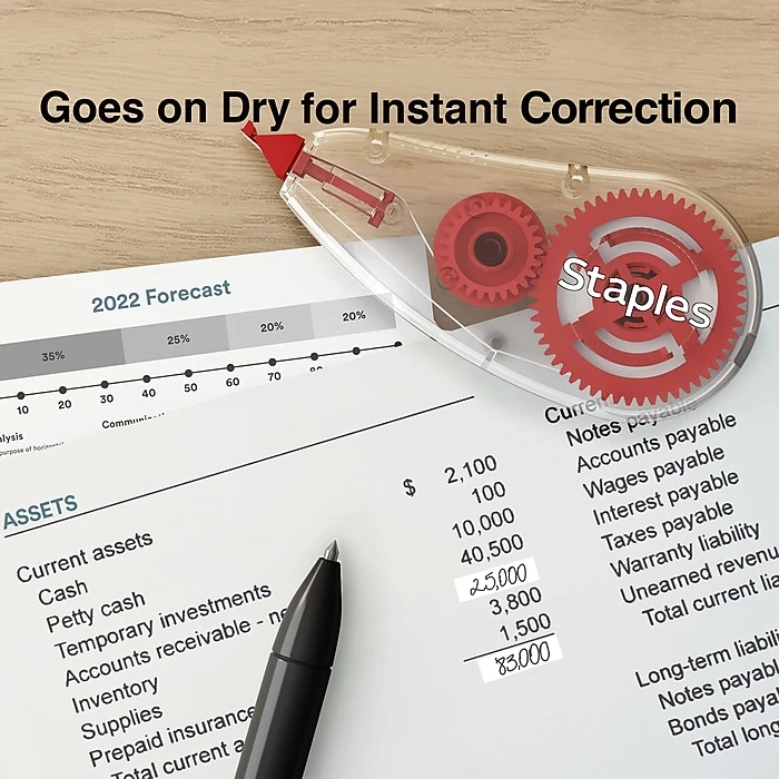 Redact confidential information and correct errors on faxes and copies with these topwinder correction tapes. The contoured ergonomic dispensers fit in the hand comfortably to support effortless application. With a fast-dry formulation, the tapes let you rewrite text quickly and make multiple revisions efficiently. These white Staples topwinder correction tapes lay down smoothly and leave no smudges or shadows, effectively hiding a multitude of errors.