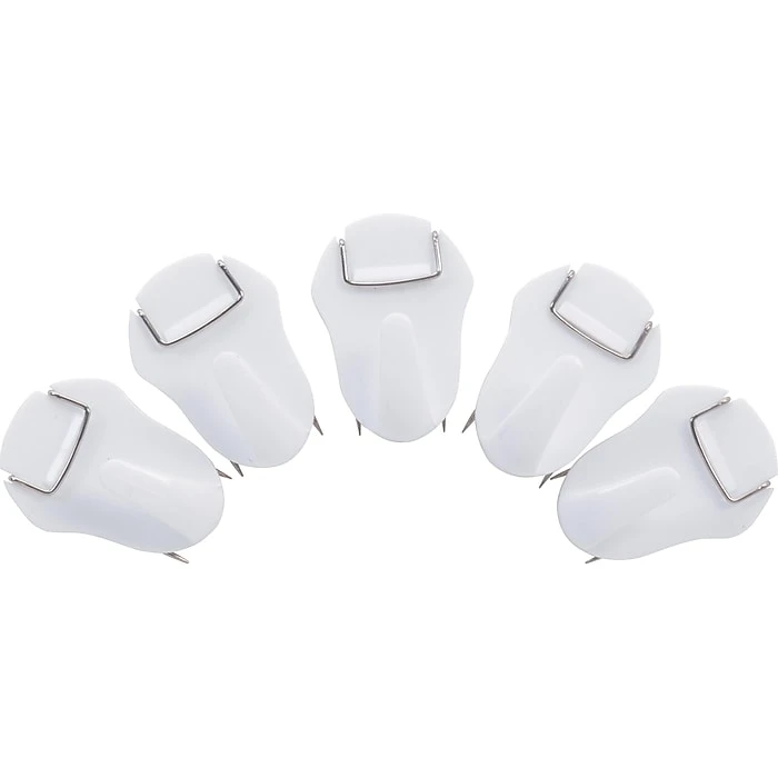 Clip notes and reminders to cubicle walls with these Staples cube hooks. These hooks feature downward-facing pins that slide securely into place without puncturing the sound-proof construction of most cubicle walls. Sturdy plastic clamps let you easily place larger items such as packets or calendars within eyesight.
