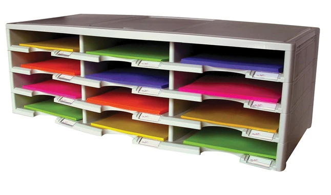 Storex Literature Organizer measuring 31-3/8 x 14-1/8 x 10-5/8 inches features 12 slots and is ideal for organizing mail, forms, brochures. It comprises of 100% post consumer recycled materials. Organizer has each compartment with a snap-in label holder for clearly identifying the contents. long-lasting plastic organizer is modular and can be stacked up to 72 compartments high. Colors may vary.
