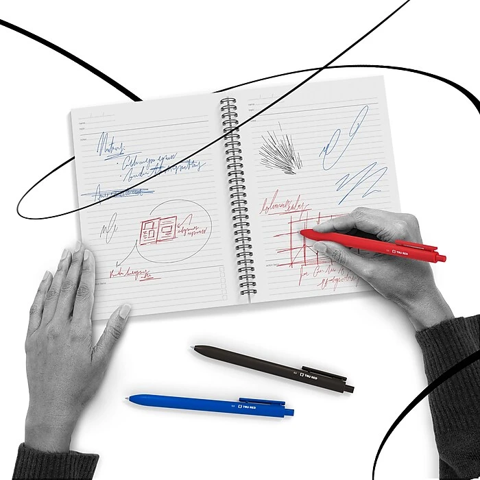 Stock up your desk drawer with one of these retractable gel ink pens. The ultra-fine 0.38mm tip is great for signing paperwork or writing notes in margins, while the bold black gel ink resists smudging for readability. Featuring a retractable design to keep the ink from drying out, this TRU RED™ 0.38mm black gel pen is easy to stash in a pocket or purse.