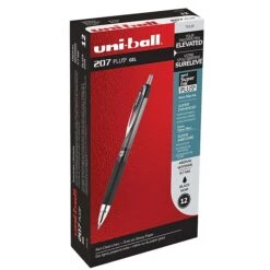 Take your writing to new heights with 207 Plus+ Retractable Gel Pens from uniball featuring a 0.7mm medium point with a stainless steel tip that resists bending and breaking. Advanced nano fiber gel ink produces an enhanced writing experience with exceptional smoothness, drying speed and line intensity, ensuring that every word is brilliantly communicated. Superior gel ink resists smudging and smearing, making these retractable gel pens ideal for everyday writing tasks, jotting down notes and signing all of your important documents. Medium point pens feature uni Super Ink PLUS+, entrapping the gel ink into the paper, producing fraud, fade and water-resistant documents that resist check washing or bleaching. The 0.7mm medium point produces rich, clean lines – even on glossy paper. Rubber grip gel pens provide an ergonomic hold that helps you complete long writing projects with greater comfort and precise control, while a translucent ink window indicates the level of gel ink remaining, so you don’t run out unexpectedly. Elevate your style with the sleek profile of the 207 Plus+ with modern metal accents and a designer metallic barrel.